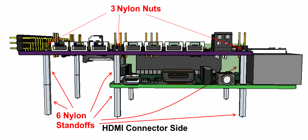 Note: as an alternative to using standoffs, an enclosure can be 3D-printed and used instead of the standoffs to create a solid enclosure for protecting and mounting VMX-pi.