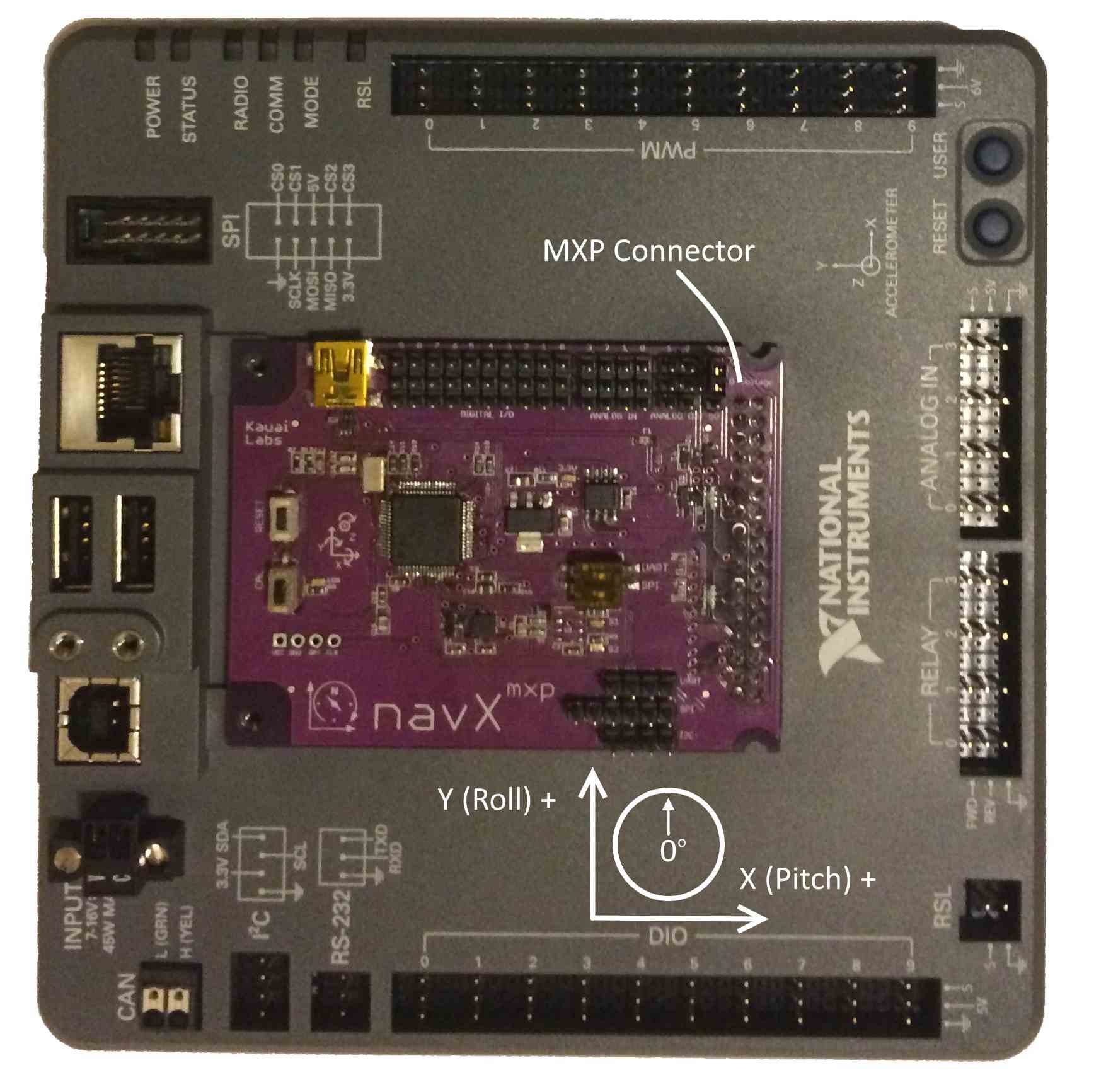 - The navX-MXP circuit board should be mounted in the center of the chassis, which ensures the origin of the yaw/pitch/roll axes truly represent the chassis center.